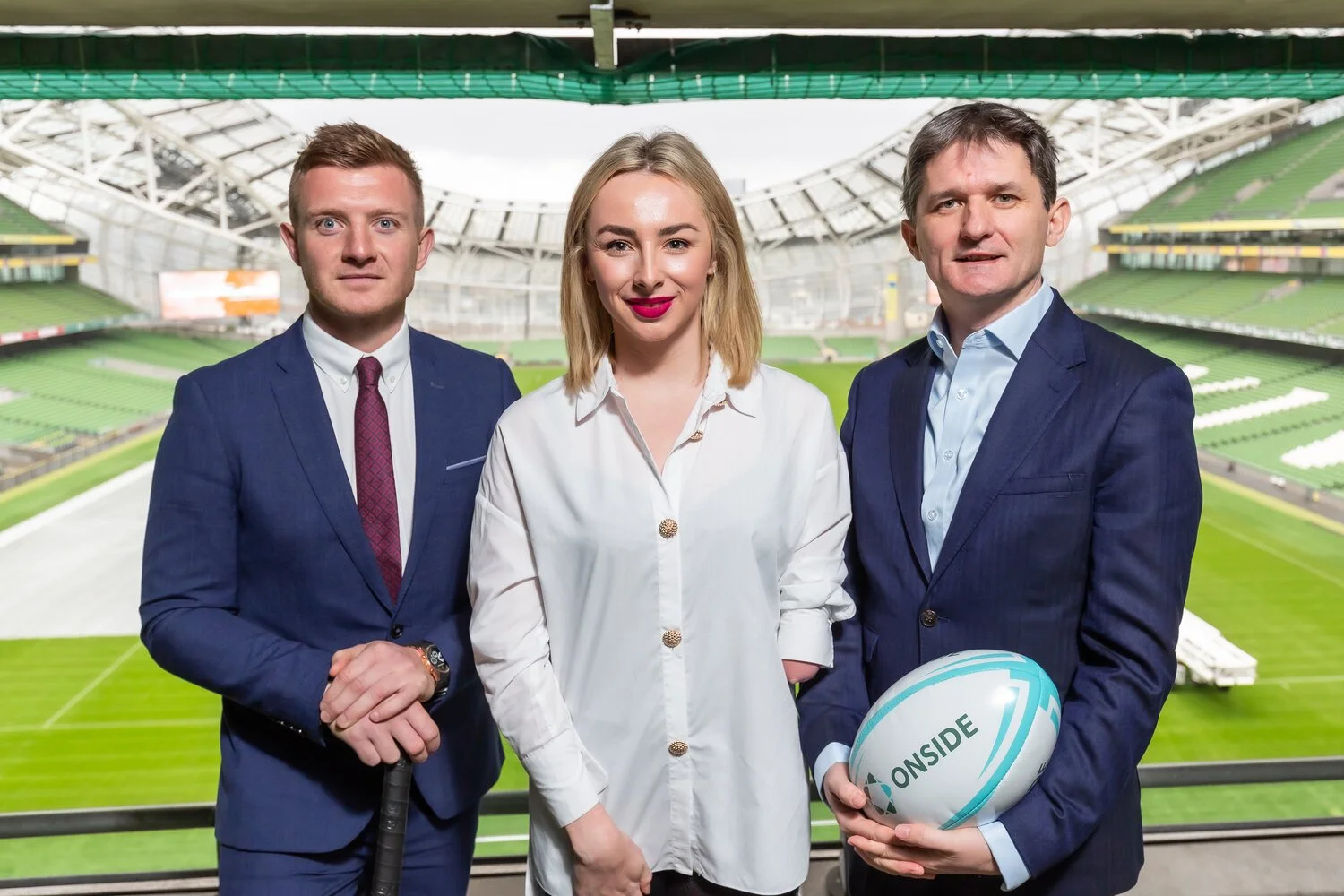 Ellen Keane (centre) is one of four female athletes at the top of the list of ONSIDE’s most marketable personalities for 2022. Keane is pictured alongside ONSIDE Strategic Advisor and GAA hurling legend Joe Canning (L) and ONSIDE Founder and Chief Executive John Trainor (R)